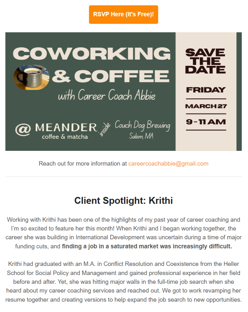 Community & Career Reflection: Krithi client spotlight, coworking & coffee event, session slots!